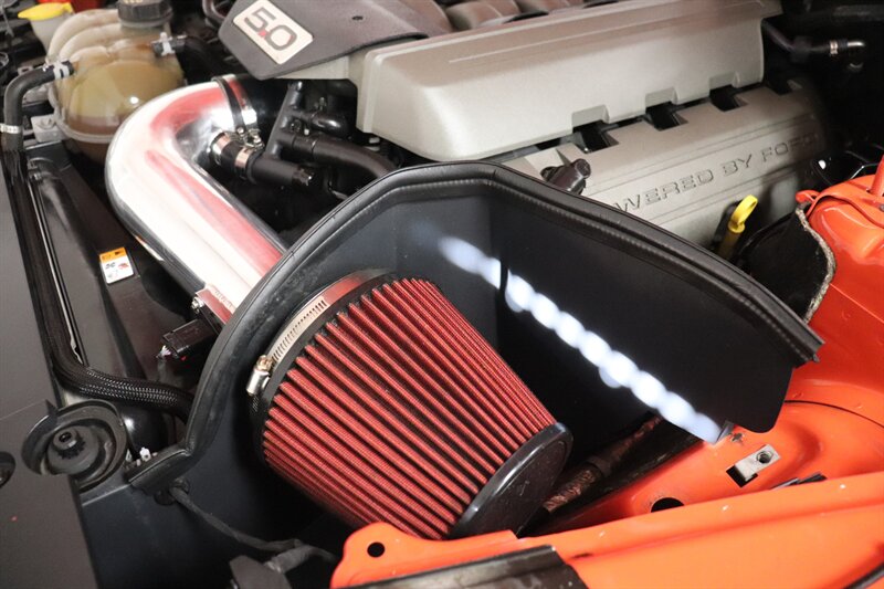 Fresh trade in! Beautiful competition orange color Adult owned and driven 5.0L Coyote V8 RWD backed up by a perfect 6 speed manual transmission! Tasteful bolt on modifications are cold air intake and exhaust system that sounds great. LED Headlights w/ Fog lights and Tail lights, Nitto NT555 ZR rated tires all the way around with good life left in them, Sync with bluetooth and radio, steering wheel modes, 2 keys, upgraded carbon fiber shift knob and much more!